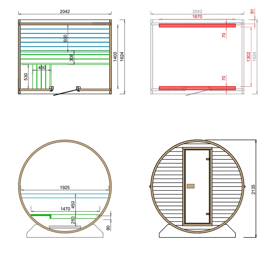Wer möchte nicht nach einem anstrengenden Tag nach Hause kommen und in der eigenen Sauna entspannen? Sie wünschen sich eine Sauna im Garten, haben aber nur wenig Platz? Das Modell für 2 bis 3 Personen mit einer Tiefe von 136 cm ist unser kompaktestes Saunafass. Mit einem Außendurchmesser von 225 cm bietet diese Tonne dennoch einen sehr großzügigen Innenraum.