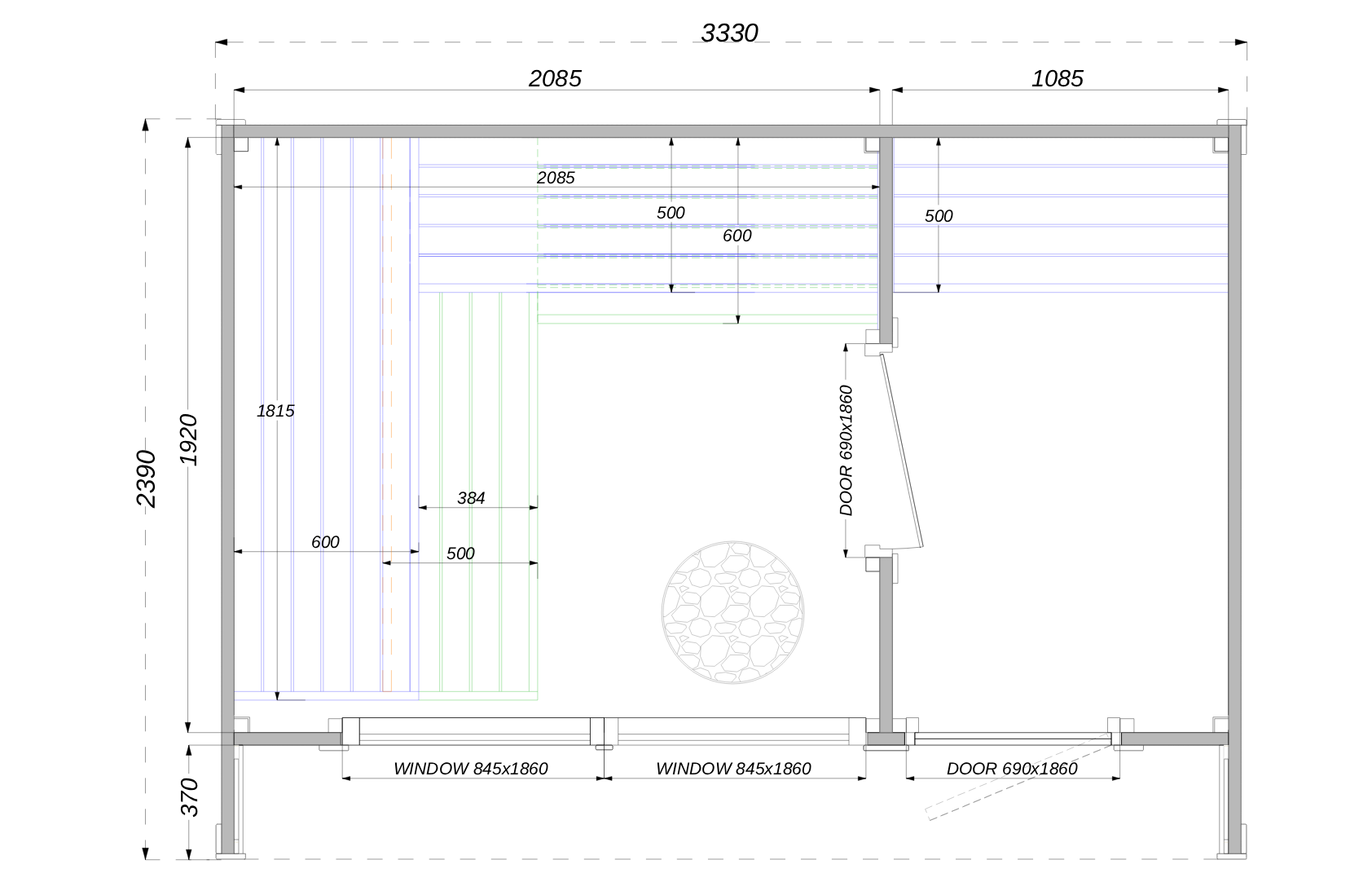 Das 3-6 Personen Saunahaus Relax Room 329, mit einer Breite von 330 cm und einer Tiefe inkl. Dachüberstand von 239 cm, ist Standard mit 8 mm getöntem Sicherheitsglas ausgeführt. Die Gartensauna wird Standard mit 3 Bänken geliefert. Diese Gartensauna können Sie als finnische Sauna mit einem Elektro- oder Holzofen betreiben. Gegen einen Aufpreis kann diese Sauna auch mit einzelnen Infrarotstrahlern oder einem kompletten Infrarotset ausgeführt werden. Diese Sauna können Sie als rein finnische Sauna oder als Kombisauna mit beidem bekommen. Durch die Infrarotstrahler erhalten Sie eine therapeutische Tiefenwirkung auf Muskeln und Gelenke und bei der finnischen Sauna können Sie nach Belieben Aufgüsse machen. Das Infrarot dient nicht dazu, die Kabine auf Temperatur zu bringen, sondern um die therapeutische Tiefenwirkung auf Muskeln und Gelenke zu erreichen. Bei dieser Variante erhalten Sie auch einen Vorraum, den Sie zum Beispiel als Umkleideraum nutzen können. Hier können Sie Ihrem Bademantel aufhängen.