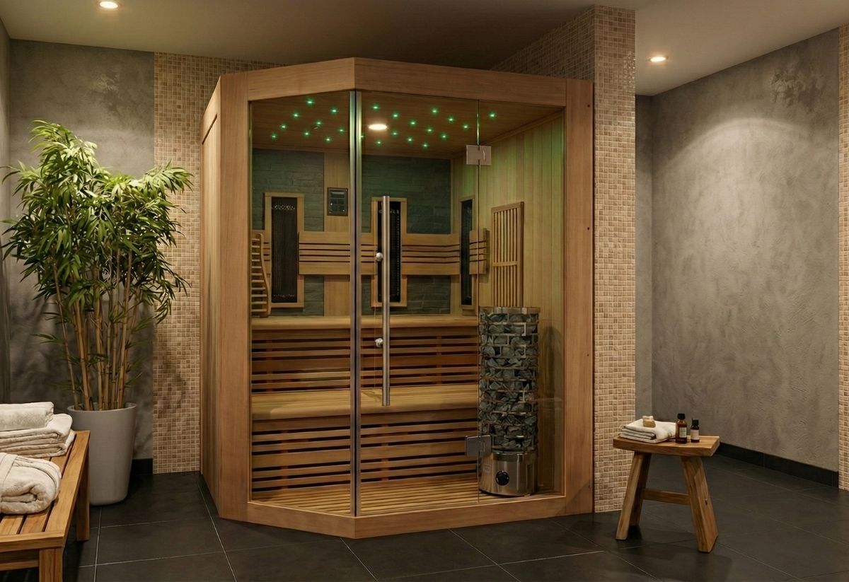 Wenn Sie sich nicht zwischen einer traditionellen Sauna und einer Infrarotkabine entscheiden können, dann ist eine Kombinationssauna etwas für Sie! Sie können in einer Kombisauna entweder eine Infrarotsitzung genießen oder eine Saunasession machen. Eine Infrarotkabine braucht nicht lange, um auf Temperatur zu kommen und ist so ideal für „zwischendurch“. Die traditionell finnische Sauna können Sie immer dann nutzen, wenn Sie etwas mehr Zeit haben. Für die traditionell finnische Sauna heizen Sie die Kabine eine halbe bis dreiviertel Stunde vor. Der 3.6 kW 230 Volt Ofen bringt Ihre Kabine auf maximal 80 Grad. Hier können Sie auch nach Belieben Aufgüsse mit verschiedenen Aufgusskonzentraten machen.